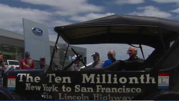 一辆有百年历史的老爷车在去旧金山的路上停在埃姆斯