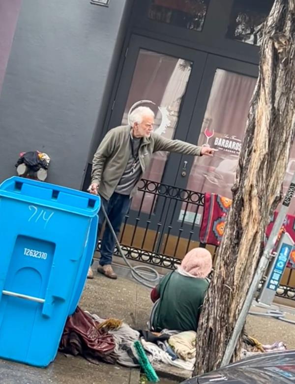 旧金山画廊老板用软管浸泡无家可归的女人:视频